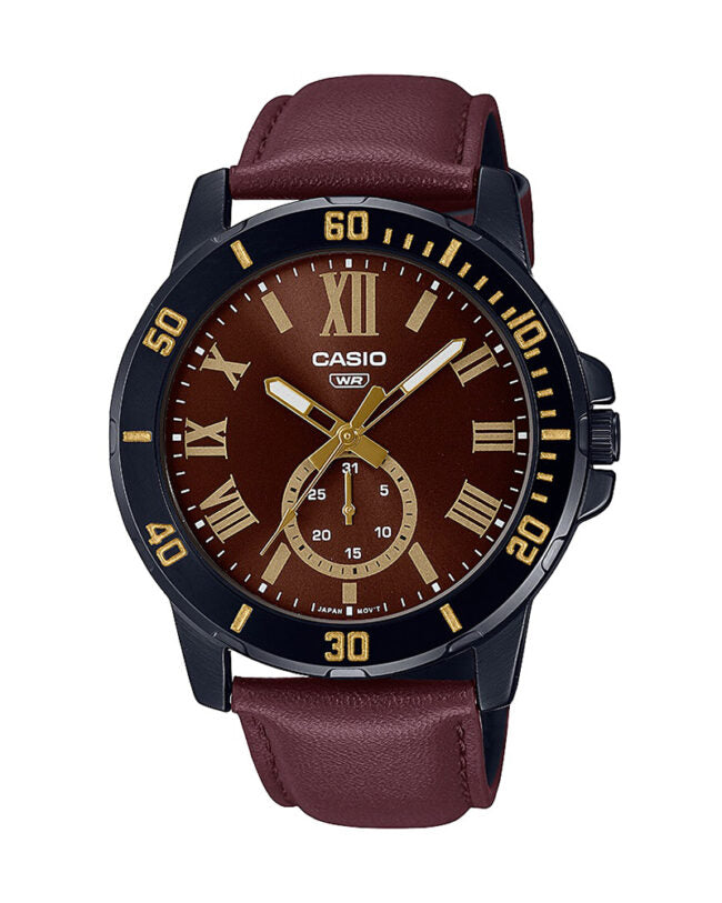 Casio General Mens Stainless Steel Analog Brown Dial Brown Leather Band Watch