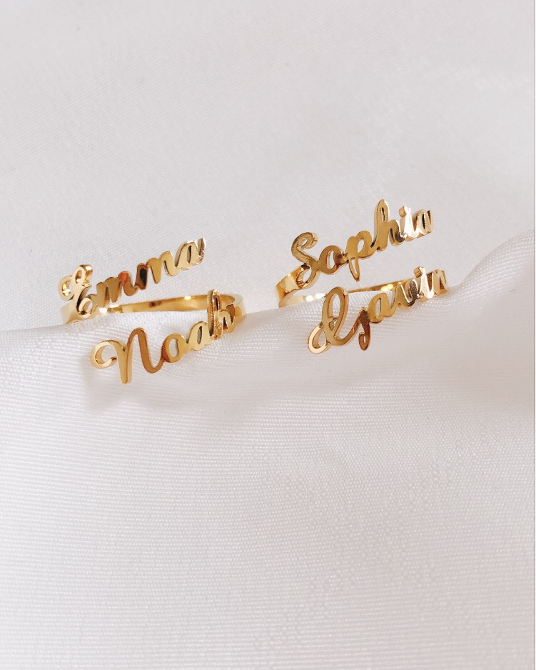 Celebrate your connection with matching 2‑name rings. This set of two personalized rings—crafted to pair beautifully—is offered together for $72 (a value-driven ~10% off). Share the story of your bond in every wear.